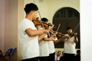 Al finalizar el conversatorio, los invitados a la presentación del libro pudieron disfrutar de un concierto a cargo de la Orquesta de Cuerdas Yaguarú, cuyos integrantes llegaron desde la provincia Guarayos, a 340km al norte de la capital cruceña, para deleitar con música sacra. Al concluir esta presentación, la orquesta fue ovacionada de pie.