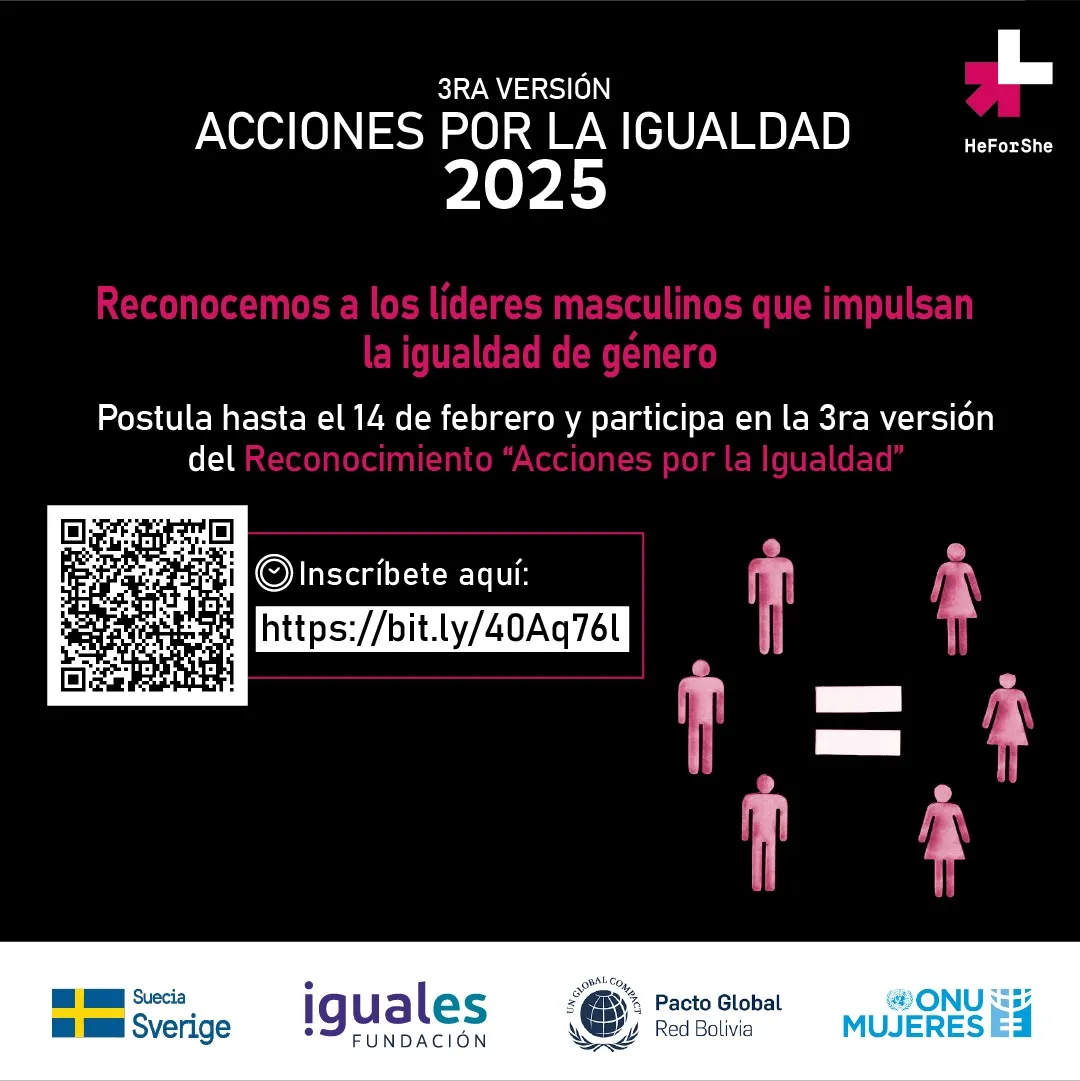 ONU Mujeres Bolivia, Fundación Iguales, el Pacto Global de Naciones Unidas en Bolivia y la Embajada de Suecia informan que el plazo para participar en
